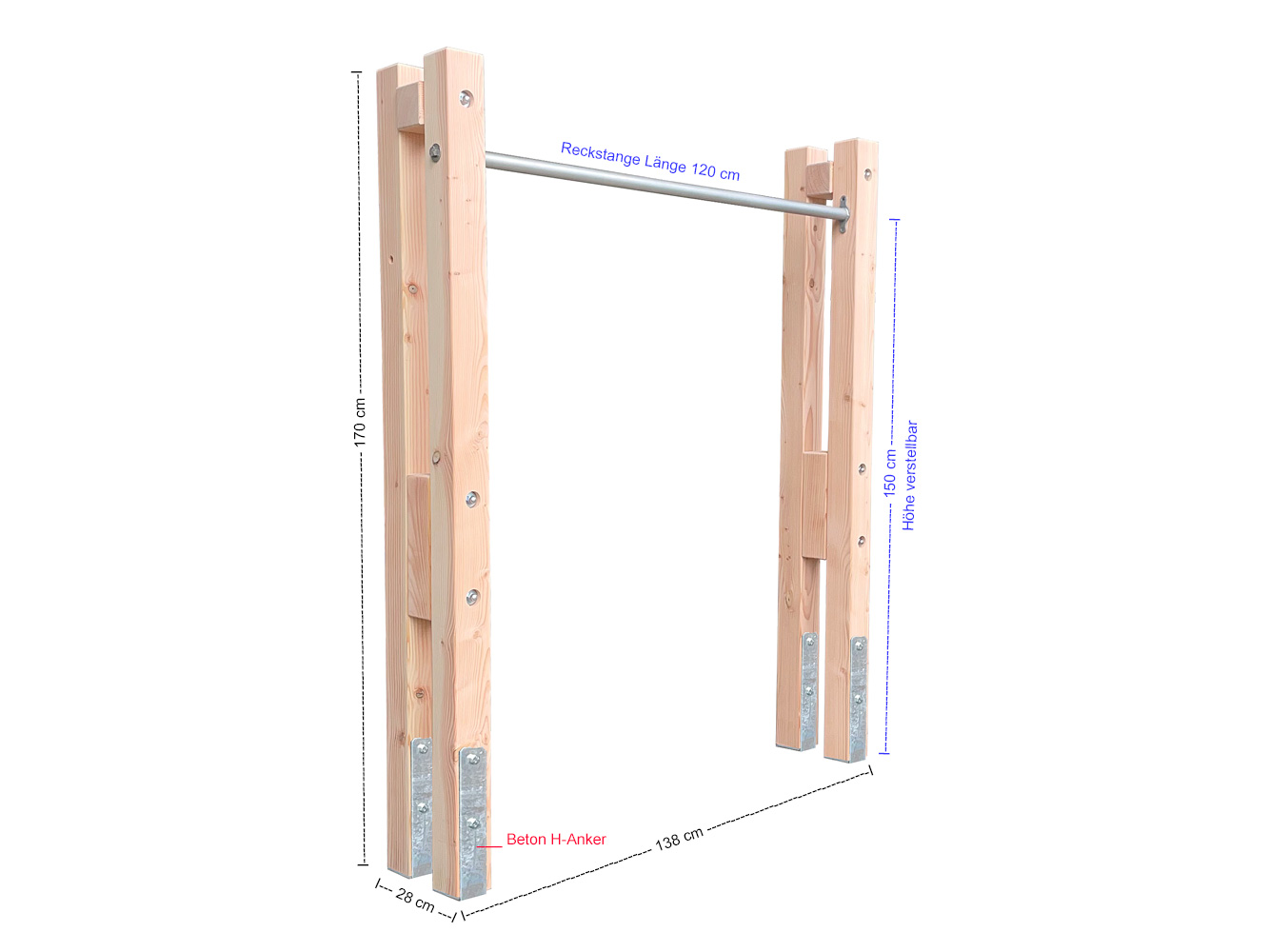 Spielturm Levi-Reck-1B-D - Turnstange Reckstange - aus Douglasie geeignet für Kinder und auch Erwachsene zum turnen.